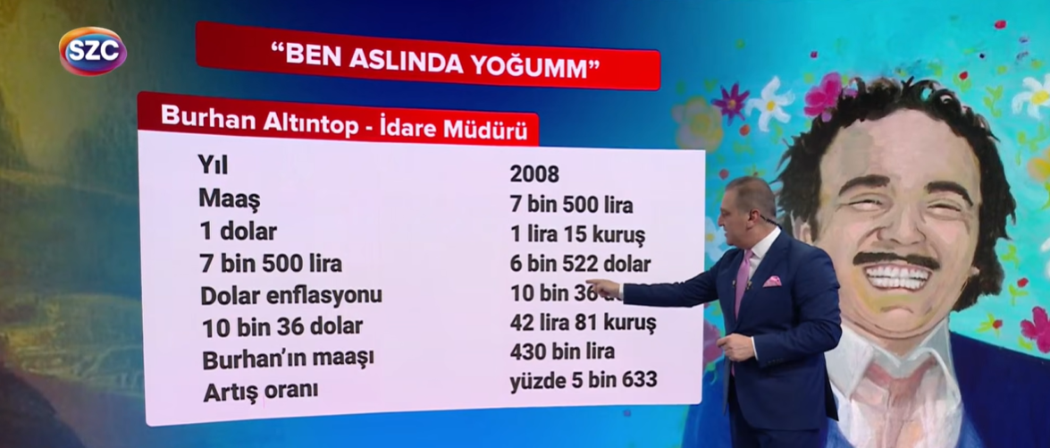 “2008 yılında Burhan Altıntop’un aldığı maaş 7.500 TL’ydi. 2008 yılında 1 Dolar, 1.15 TL’ye eşitti; bu kurla 7.500 TL, 6.522 dolara denk geliyordu.
